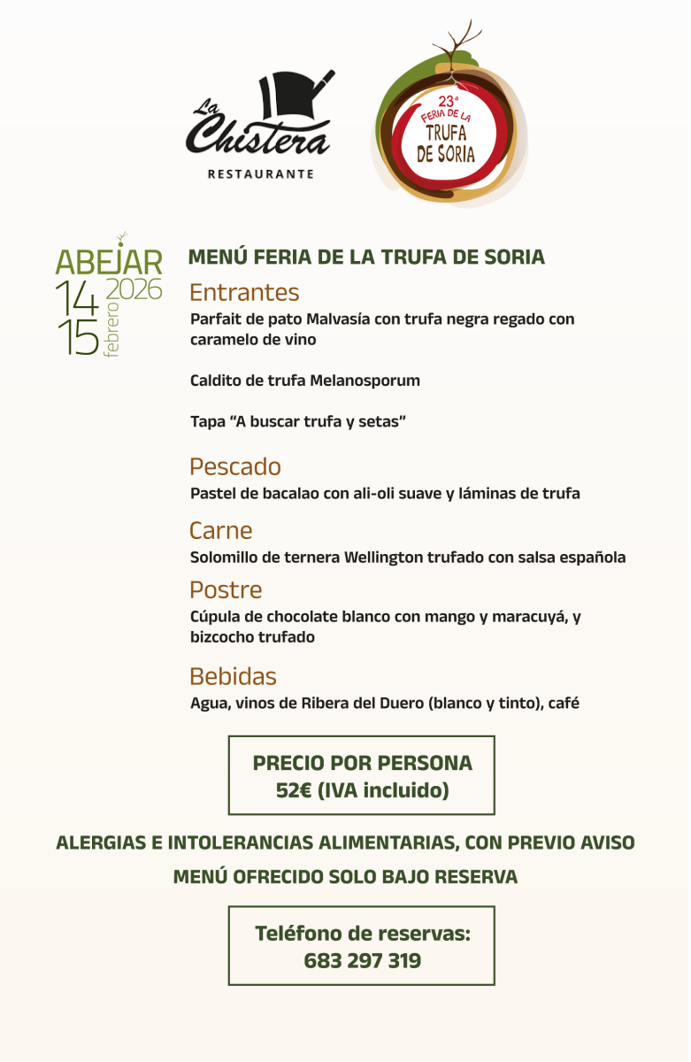 Menú con trufa negra de Soria. Elaborado por Restaurante La Chistera de Soria.